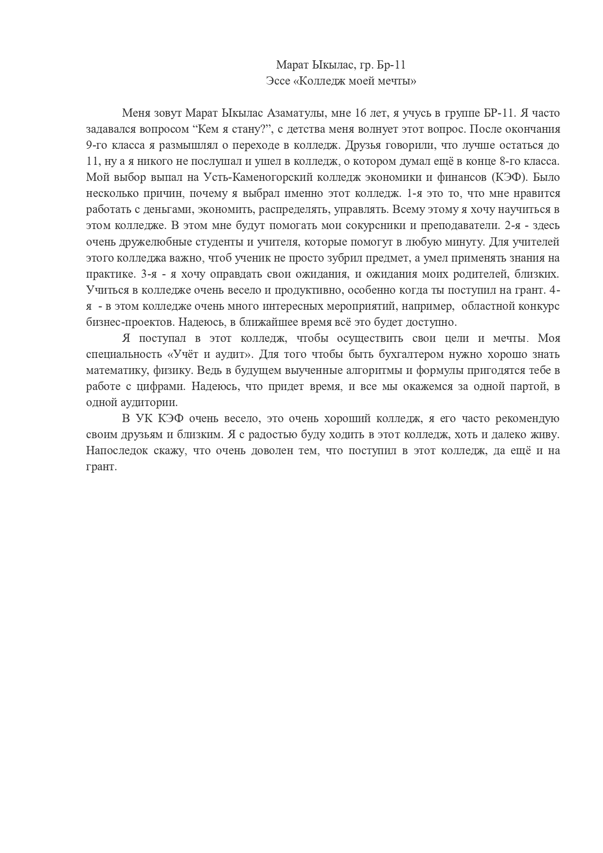 As part of the celebration of the 80th anniversary of the Vet system and teacher’s day, students of Ust-Kamenogorsk College of Economics and Finance took part in the challenge essay “College of my heart”. The best works are recommended for publication on the College’s website.