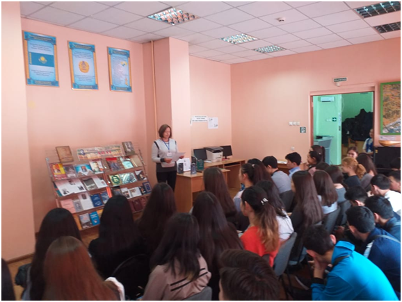 February 13, 2020, 1st year students of the TM-11 and AA-11 groups of the Ust-Kamenogorsk College of Economics and Finance, together with the history teacher Zhadyra Bazylkhanovna, participated in the event in the library of the branch No. 4 named after O. Bokeev. The librarians organized a literary evening dedicated to the 80th anniversary of Mukhtar Magauin and got acquainted students with his work. The evening was held in an interesting form, the students received very good impressions.