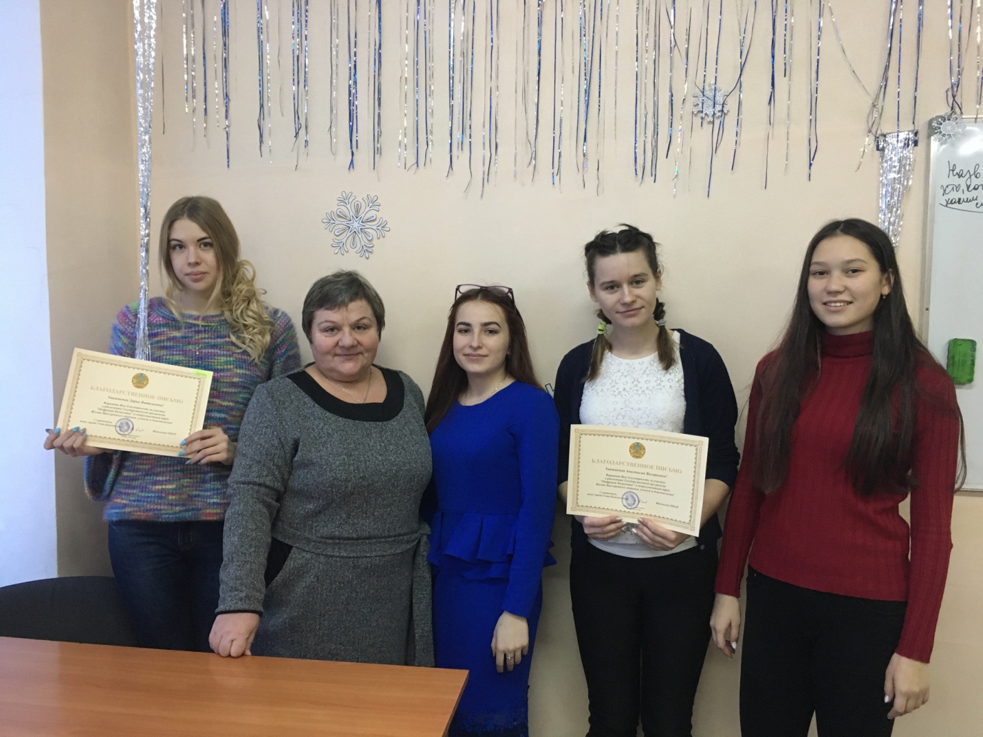 The 3rd year students of the Ust-Kamenogorsk College of Economics and Finance under the Shaturnaya Lyudmila Viktorovna supervision took an active part in the implementation of the State Program “Digital Kazakhstan” of the town akimat during their holidays. Among the participants, Martyanova Anastasia and Kiklevich Darya were especially singled out and on behalf of the Akim of Ust-Kamenogorsk town Omar Zhaksylyk Mukashuly, they were given letters of thanks for their diligent work.