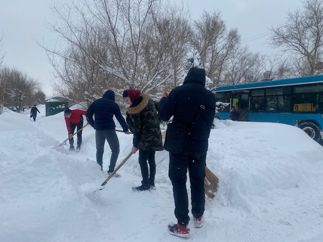Due to weather conditions, students from the TM-31 group of Ust-Kamenogorsk College of Economics and Finance decided to help their hometown. For the convenience of the townspeople, future mechanics actively cleaned the college territory, stops and sidewalks along Bazhov Street. College students are very responsive and always willingly try to help their city and educational institution in their free time. Such activity is very important.