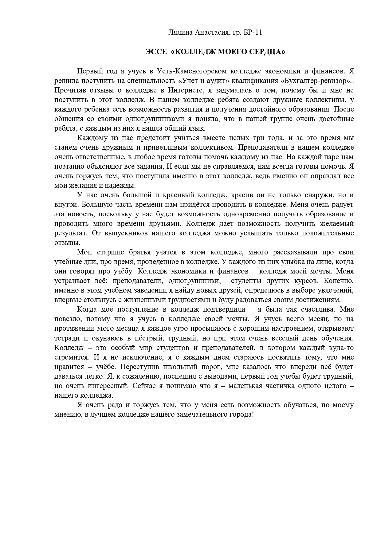 В рамках празднования 80-летия системы ТиПО и Дня учителя студенты Усть-Каменогорского колледжа экономики и финансов приняли участие в челендж-эссе «Колледж моего сердца». Лучшие работы рекомендованы к публикации на сайте колледжа.