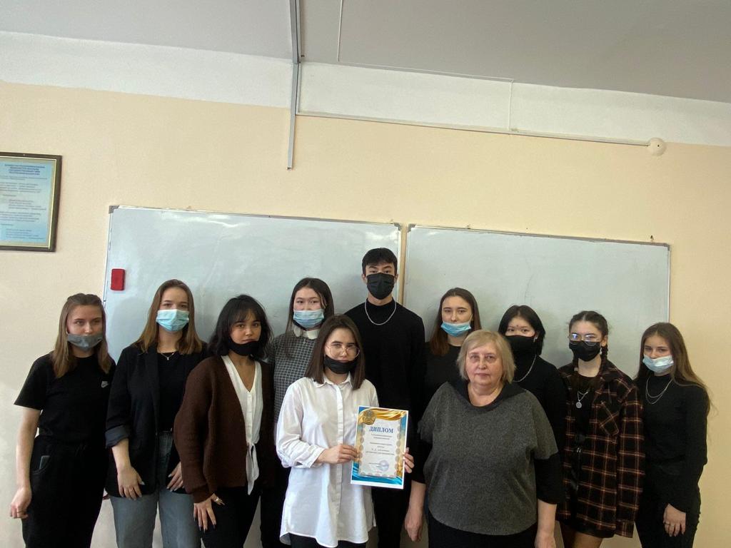 Үздік атанған 20Бр-23р «Тапқырлар» тобының студенттері: К.Салыкбаева, Е.Антропова, Т.Антропова, Д.Букумбаев, А.Джанкулова, К.Князева, М.Гордеева, Ы.Марат, К.Крючкова, Е.Яркова.