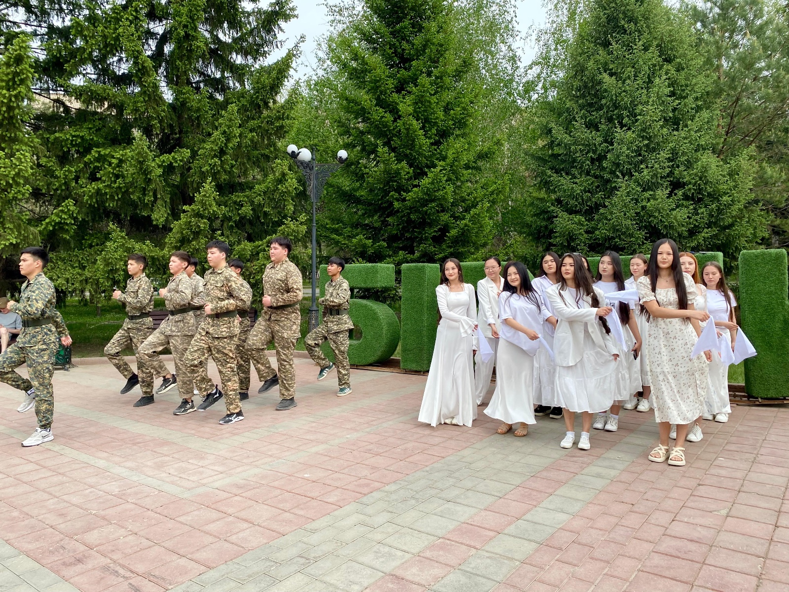 Іс-шара аясында патриоттық қойылымдар, зияткерлік ойындар мен саптық дайындық бойынша жарыстар өтті. Студенттер соғыс жылдарындағы ерлікті бейнелейтін театрландырылған көріністер қойып, ардагерлерге алғыстарын білдірді.