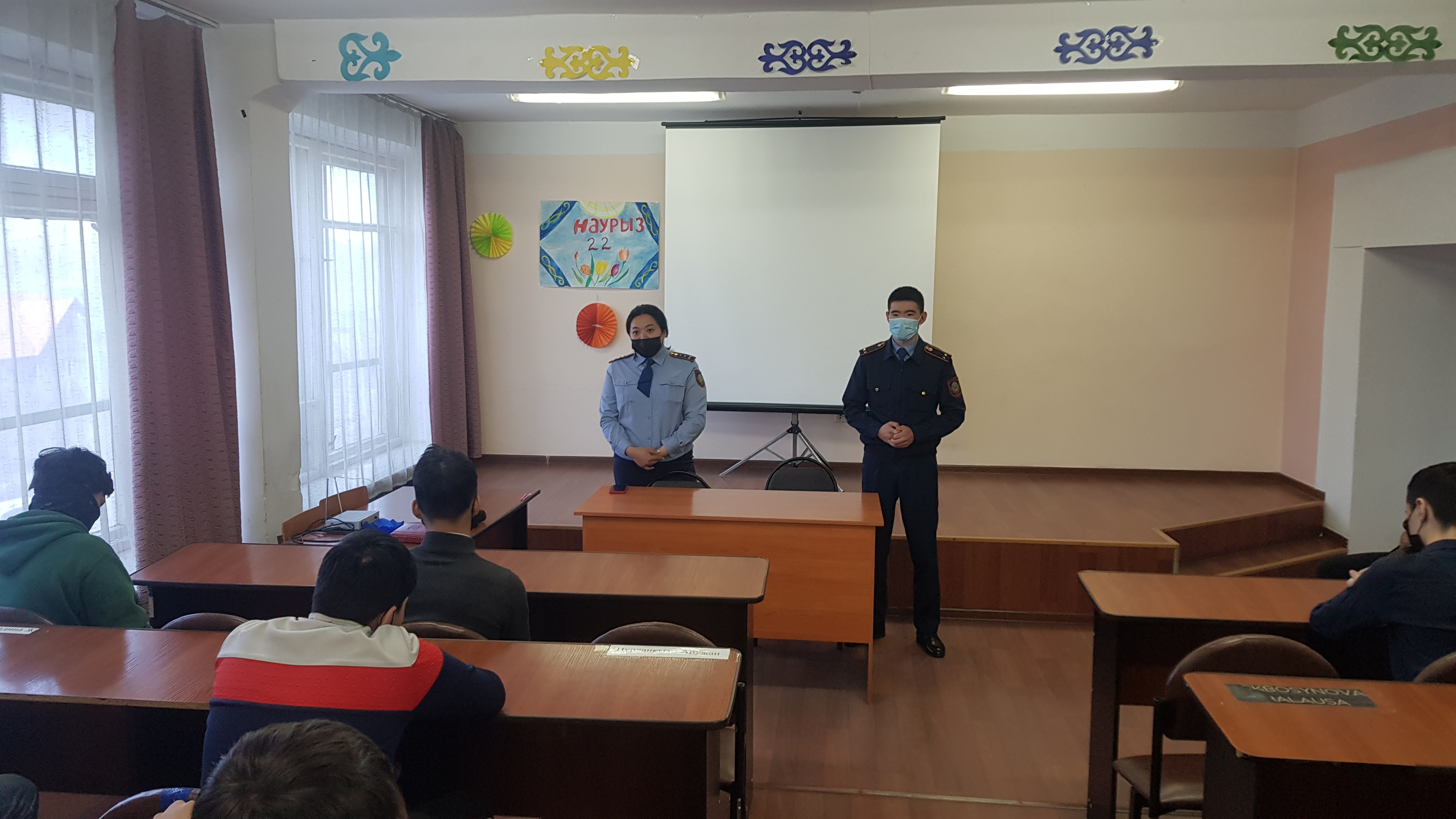 2021 жылдың 28 сәуірінде Үлбі полиция бөлімінің қызметкерлері: капитан Муратова Асем Оралбекқызы мен лейтенант Қуанышев Тоқтар Аманжолұлы Өскемен экономика және қаржы колледжінің студенттері арасында құқық бұзушылықтың алдын алу мақсатында түсіндірме әңгіме өткізді. Әңгіме барысында студенттерге Қылмыстық және әкімшілік кодекстің кейбір баптары түсіндірілді. Іс-шара нәтижесінде студенттер өздерін қызықтырған сұрақтарға жауап алды.