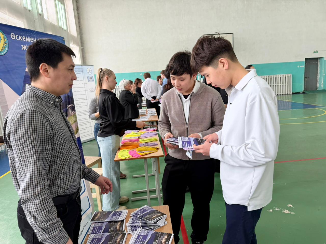 Оқушылар үшін білім беру бағдарламаларының таныстырылымдары, ақпараттық материалдар және кәсіптік бағдар беру әңгімелері ұйымдастырылды. Мектеп оқушылары оқу шарттары, студенттік өмір, шәкіртақы алу мүмкіндіктері, сондай-ақ түрлі байқаулар мен жобаларға қатысу мүмкіндіктері туралы белсенді түрде сұрақтар қойды.