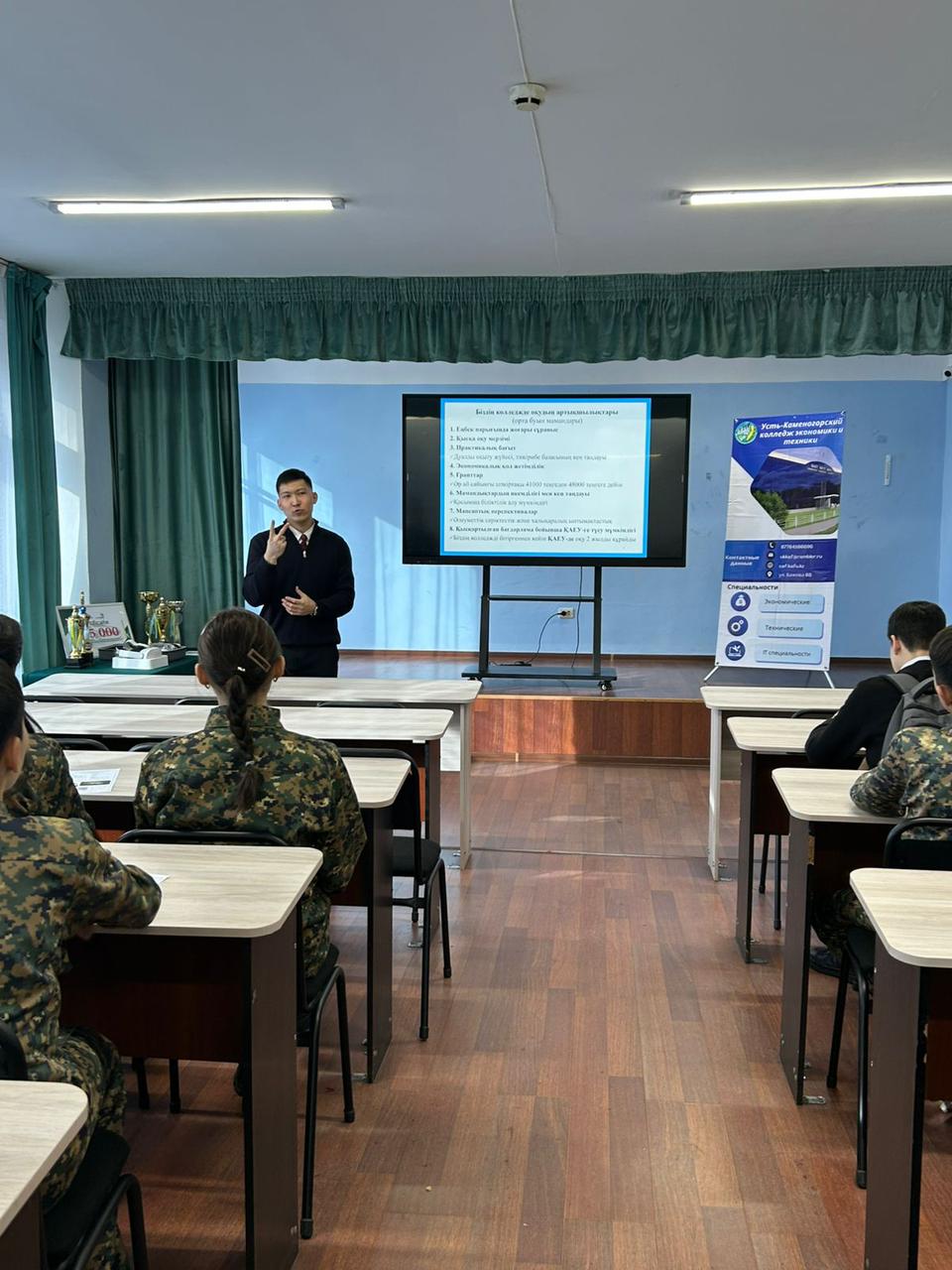 Колледж студенттері «1С» бағыты бойынша өздерінің практикалық дағдыларын көрсетіп, бухгалтерлік бағдарламалармен жұмыс істеу және бизнес-процестерді басқару элементтерін таныстырды. Сонымен қатар оқушыларға колледж мамандықтары, оқу кабинеттерінің техникалық мүмкіндіктері және оқу шарттары туралы ақпарат берілді.