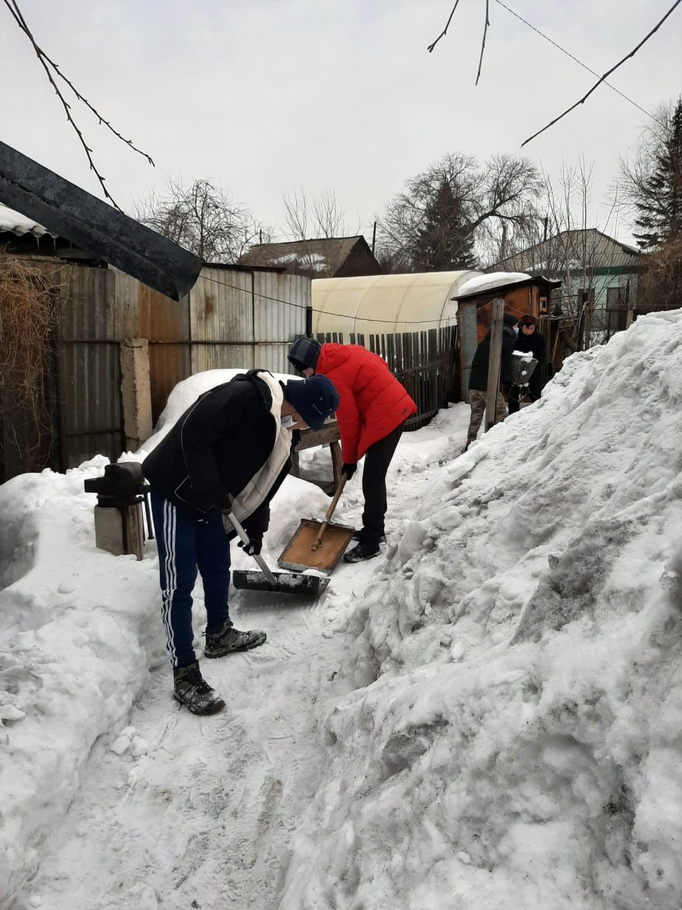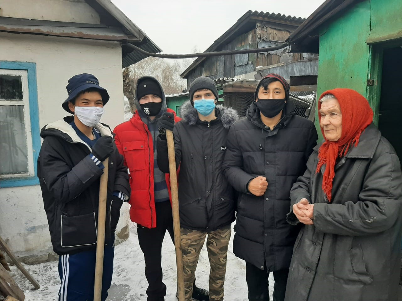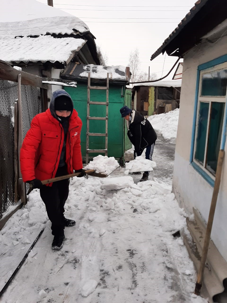 Өскемен экономика және қаржы колледжінің ерікті студенттері «Біргеміз» акциясына қатысып, үйдің маңын қардан тазартуда тыл еңбеккері Анна Петровна Себелеваға көмектесті.
