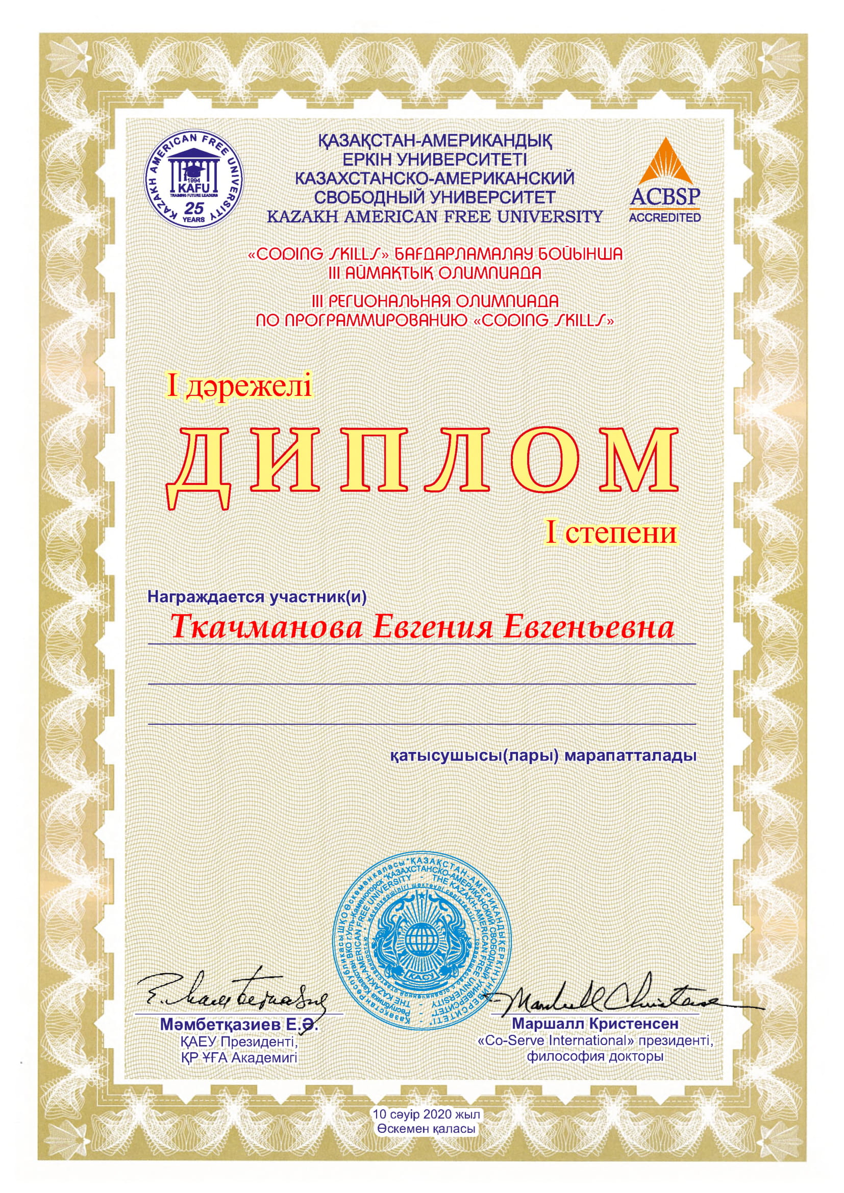 Ткачманова Евгения, наша студентка 4 курса специальности «Вычислительная техника и программное обеспечение», заняла первое место в III региональной олимпиаде по программированию «CODING SKILLS» среди учащихся колледжей области, которая проходила на базе КАСУ 10 апреля 2020 года в дистанционной форме. Научный руководитель – Хомова Т.М.