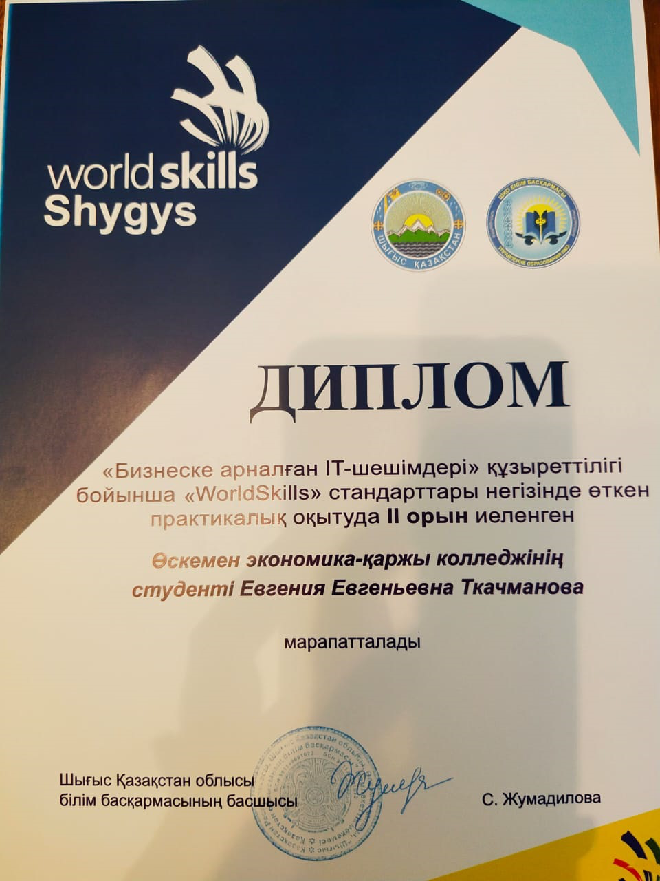 Студенты УК КЭФ приняли участие в V региональном чемпионате «WorldSkills Shygys — 2020». Выпускница нашего колледжа специальности «Вычислительная техника и программное обеспечение» Ткачманова Евгения заняла 2 место в компетенции «IT решения для бизнеса», руководитель Хомова Т.М. В компетенции «Токарные работы на станках с ЧПУ» студент 4 курса специальности «Техническое обслуживание, ремонт и эксплуатация автомобильного транспорта» Серіков Нұрғазы занял 3 место, руководитель Сембина Ш.К.